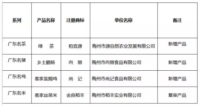 梅江區(qū)獲得廣東省“十大名牌”系列農產品名單: